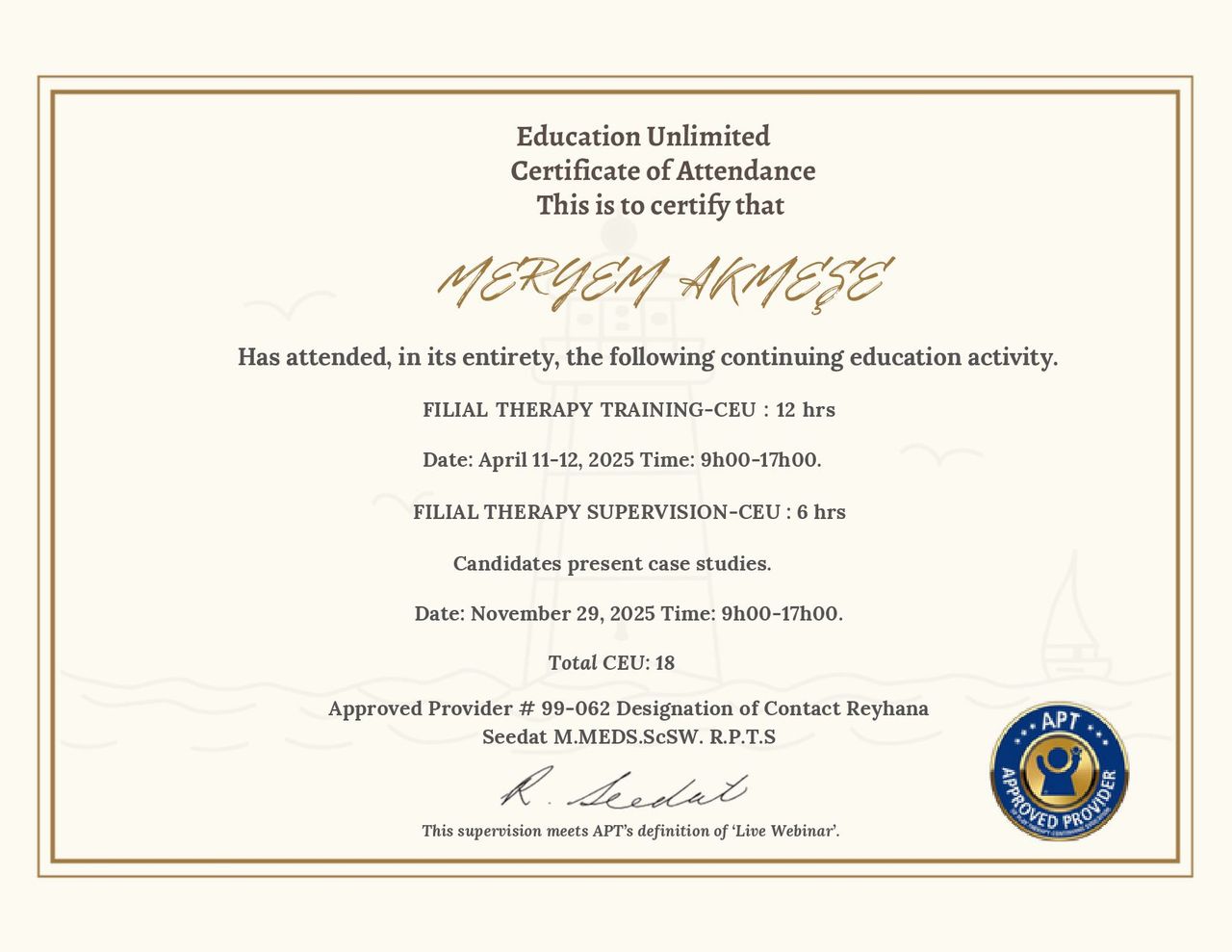 • Filial Terapi- Reyhana Seedat (APT)